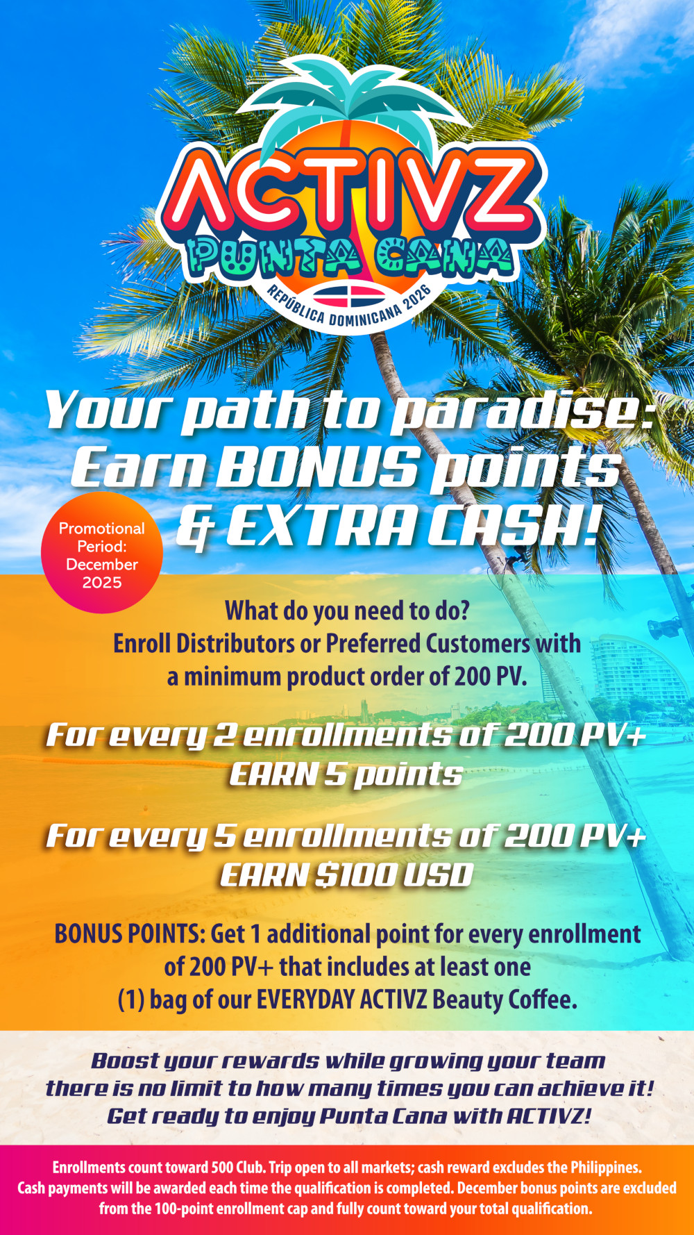 Enroll New Distributors or Preferred Customers with a minimum of 100 PV+